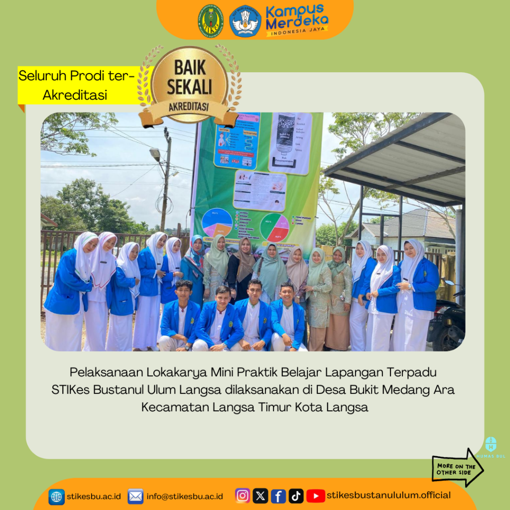 Langsa – Dalam pelaksanaan Praktik Belajar Lapangan Terpadu yang terdiri dari program studi D3 Kebidanan, S1 Kesehatan lingkungan , dan S1 Administrasi Rumah Sakit Mahasiswa/i STIKes Bustanul Ulum Langsa telah menyukseskan forum pertemuan yang merupakan penerapan dari manajemen penggerakan pelaksanaan di Desa Bukit Medang Ara Kecamatan Langsa Timur Kota Langsa pada tanggal 13 Juli 2024.